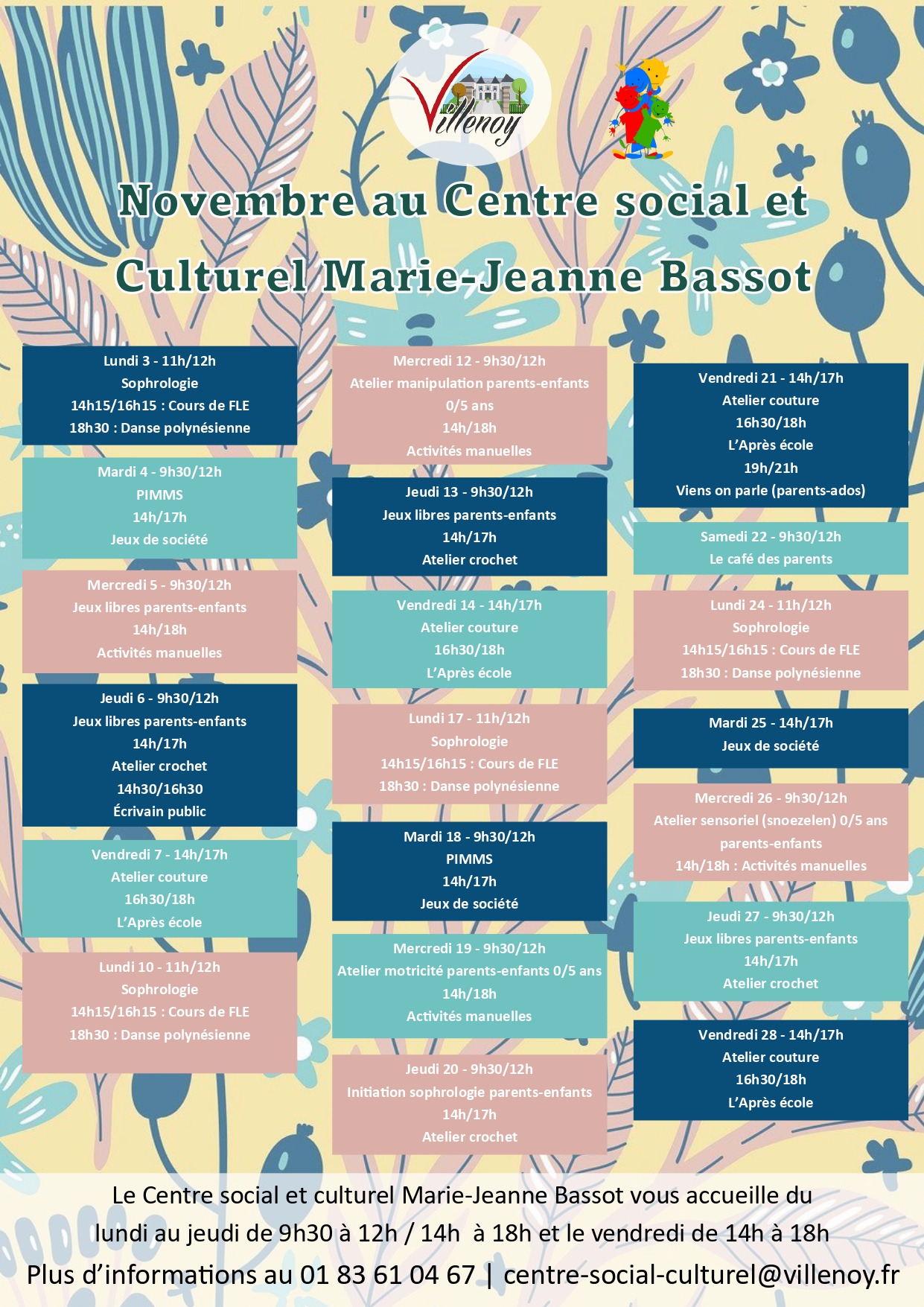 Contact : 01 83 61 04 67 ou centre-social-culturel@villenoy.fr