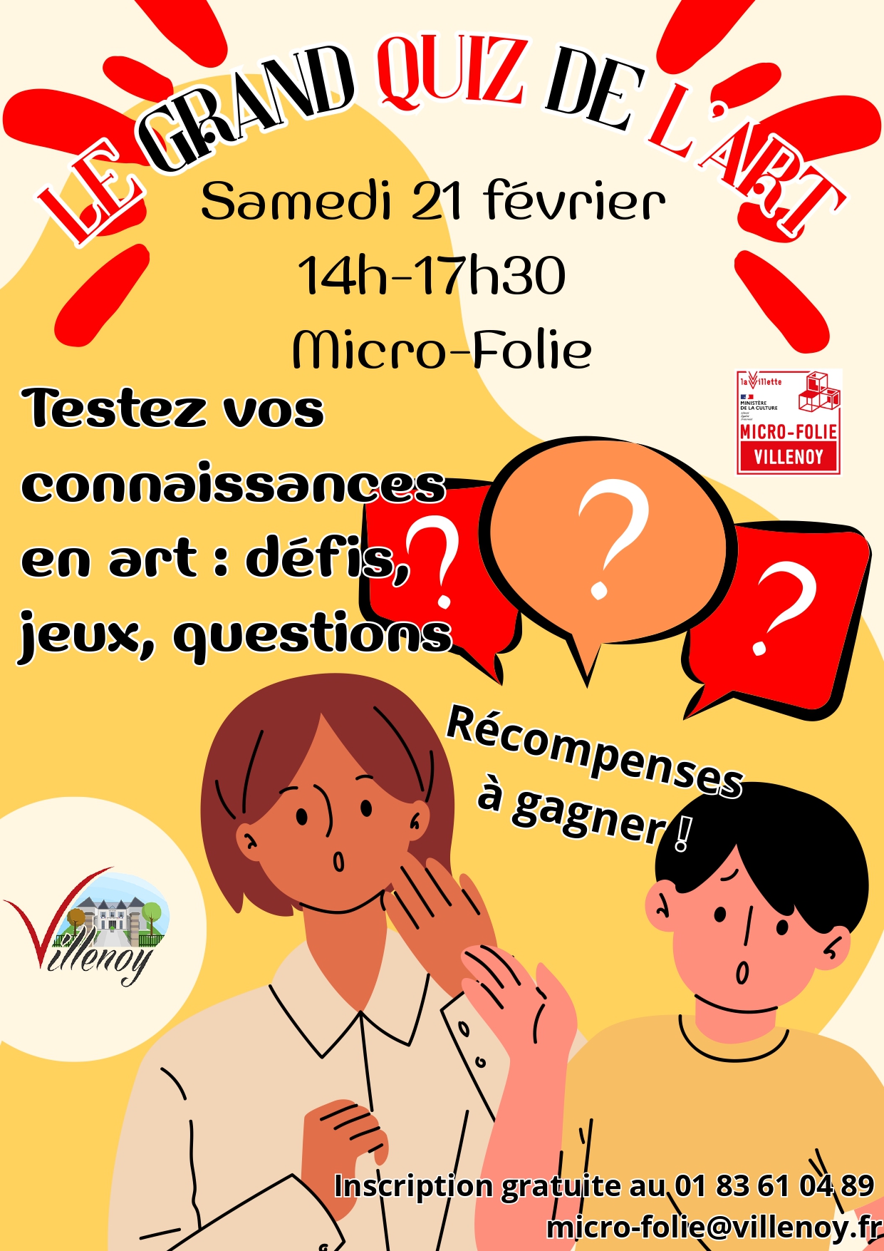 > L’Aprèm au Musée : Le Grand Quiz de l’Art | Samedi 21/02 de 14h à 17h30 > Inscription gratuite au 01 83 61 04 89 ou micro-folie@villenoy.fr