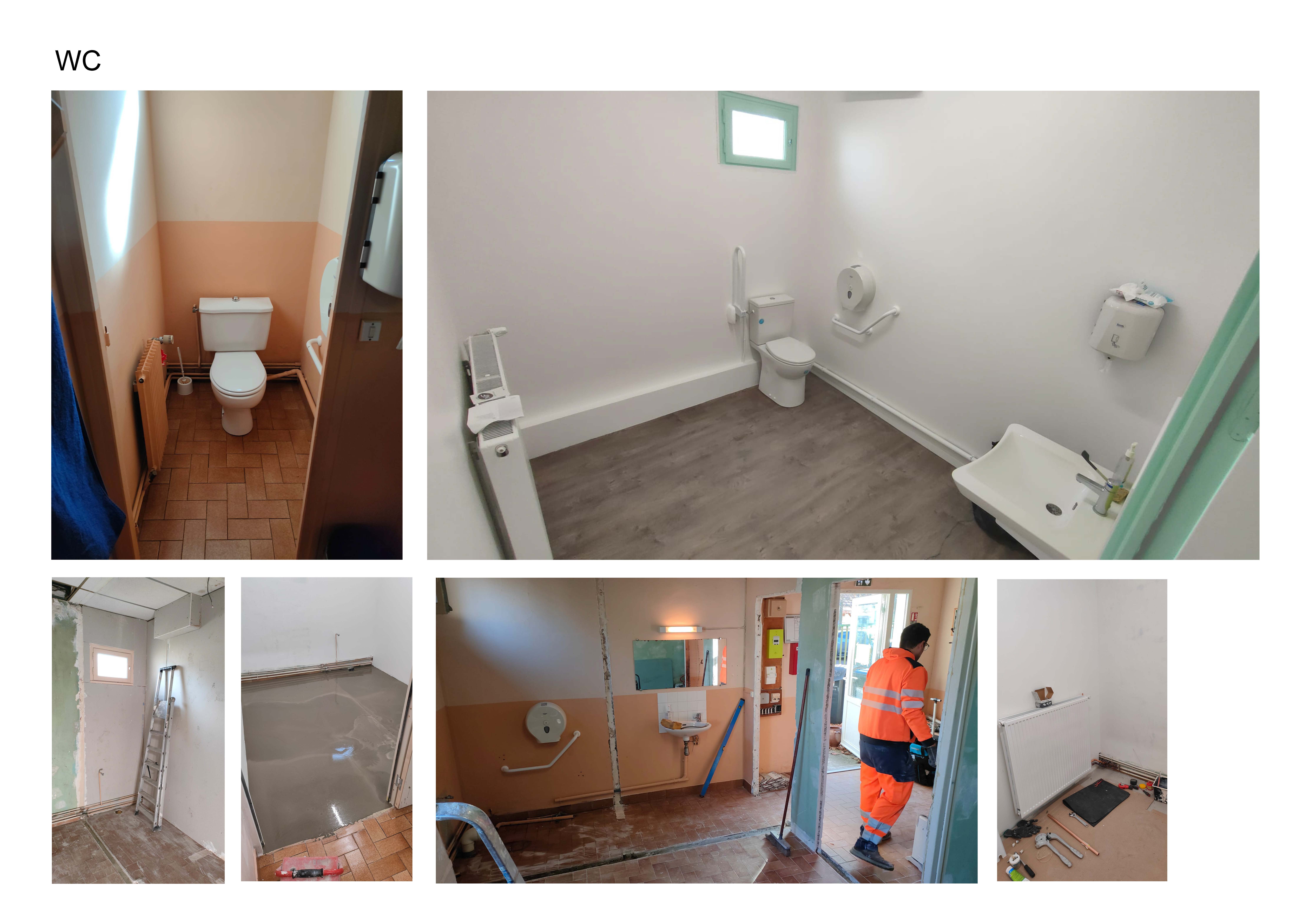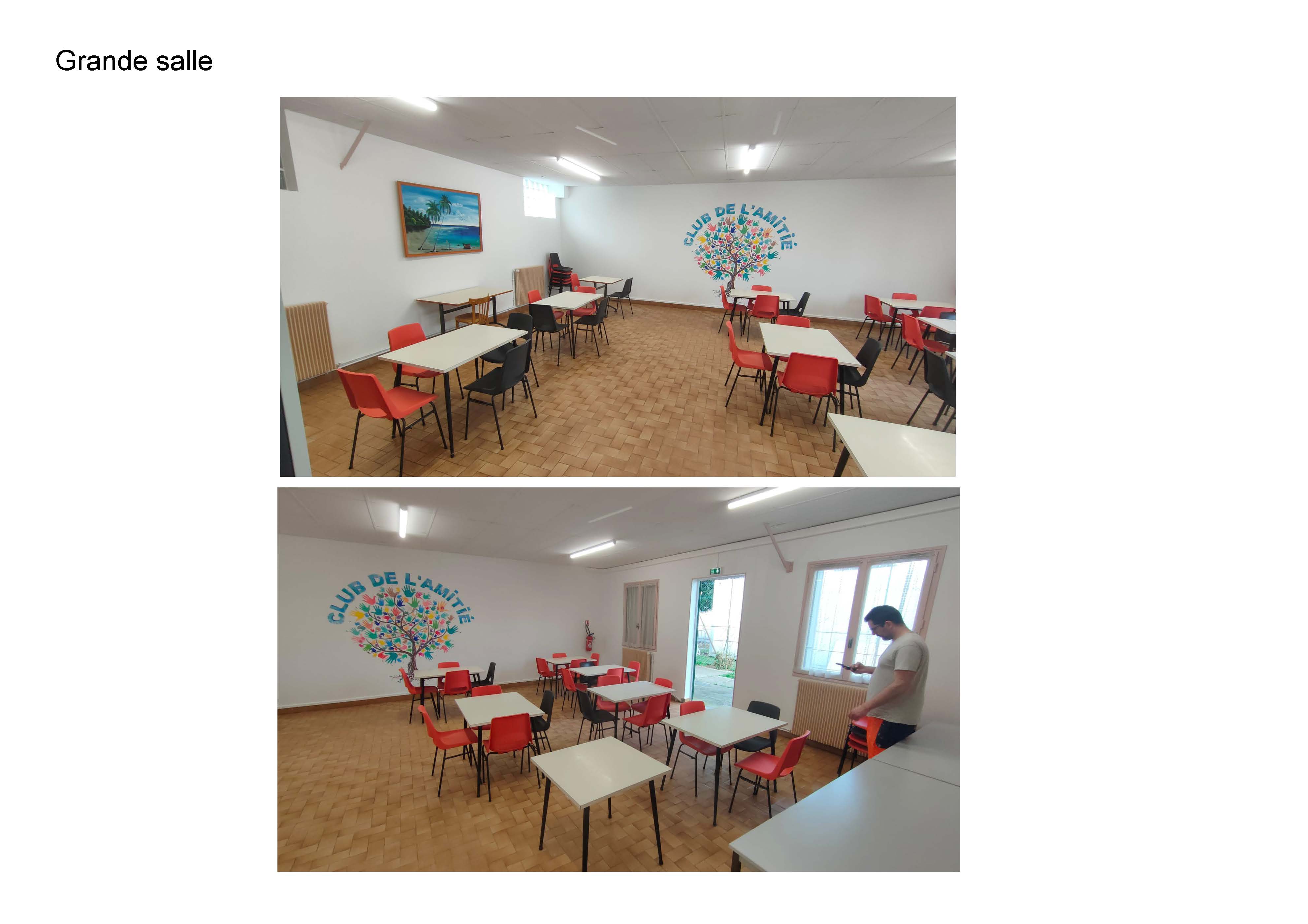 Le bureau, la petite et grande salle ainsi que la cuisine ont été rénovés du sol au plafond (peintures, aération, menuiserie, pose d’un nouveau revêtement et mise aux normes électriques); les WC ont également été réhabilités avec une nouvelle plomberie afin de respecter les normes d’accessibilité aux personnes à mobilité réduite.